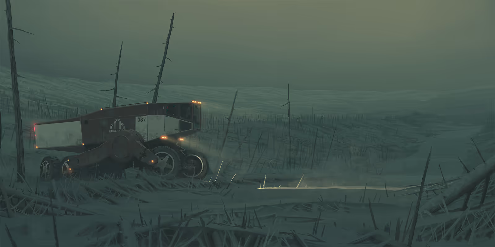 The sombre world of the game is inspired by beloved games — Kentucky Route Zero and Inside — and the work of the artist Simon Stålenhag. It is a place full of melancholic atmosphere that seems to exist outside of a specific time and location. An abstract urban environment of this world is alienating and isolated, and the character is almost always seen in a confined space.